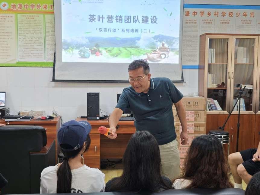 首先,讲师团在茶厂与公司刘仕珍总经理和冯劲松经理进行了茶产业的发展现状、茶产业的发展未来等方面进行研讨。然后,讲师团赴地派中学对员工开展茶产业销售策略培训。李政敏副教授从产茶叶品牌角度开展讲述,黄华乾博士分享了产品销售团队建设的心得,谷少永老师和企业员工探讨了新媒体营销策略选择。