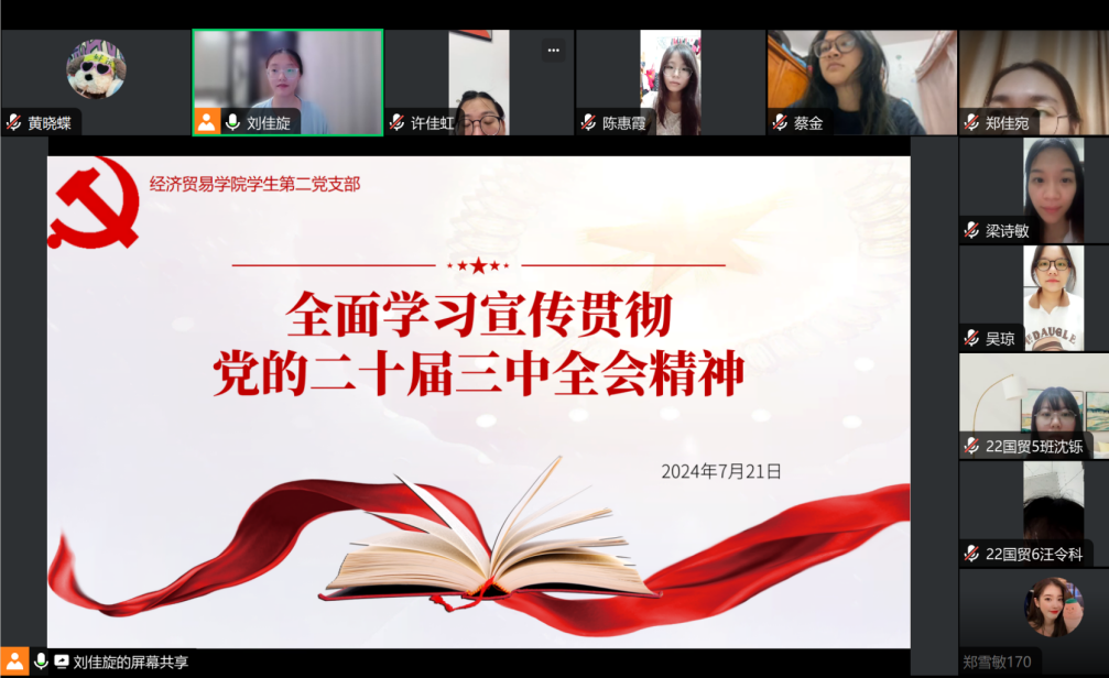 最后经济贸易学院学生第二党支部李彩丽老师强调,作为新时代党员同志,要深入学习领会党的二十届三中全会精神,响应党的号召,肩负起青年人的责任与担当,发挥模范带头作用,踔厉奋发、勇毅前行,用实际行动诠释对国家的热爱与责任,用青春风采共同谱写中国式现代化的时代新篇。
