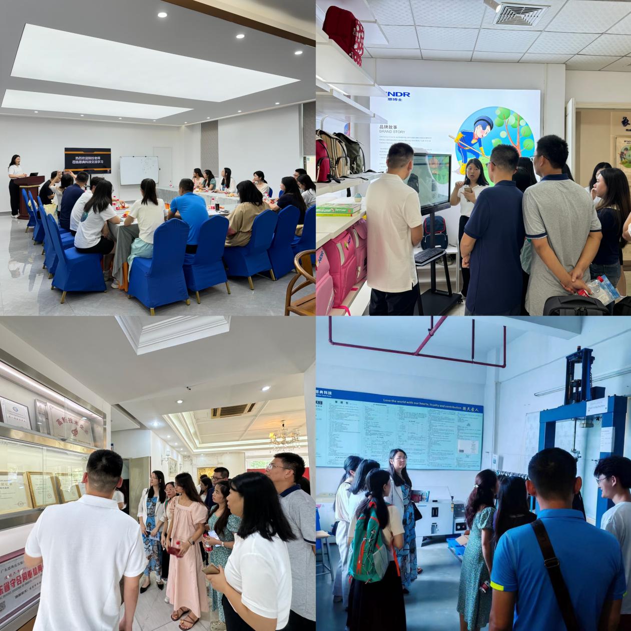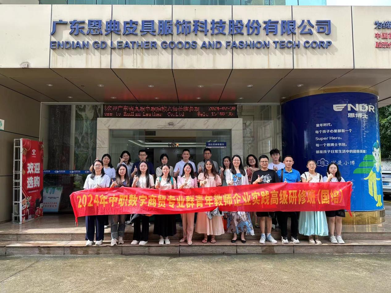 7月底,2024年中职数字商贸专业群青年教师企业实践高级研修班(国培)一行人在东莞开展了为期一天的企业调研活动。上午,学员们参观了盟大集团,下午则前往广东恩典皮具服饰科技股份有限公司,深入了解企业发展历程和业务模式以及企业在数字贸易转型中的经验,并与集团负责人进行了深入的交流讨论。
