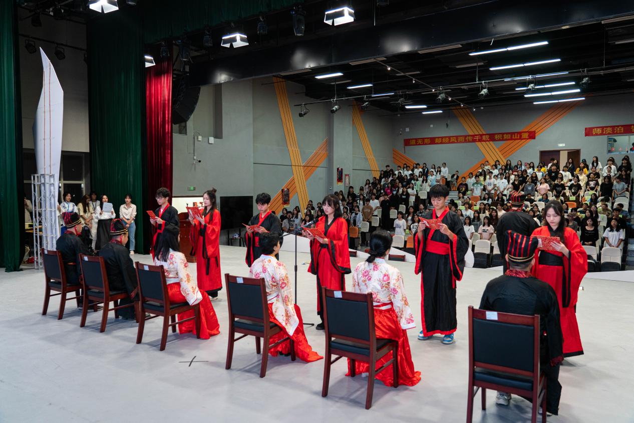 2020年经贸学院首次举办了新生拜师礼,如今已走到了第五个年头。拜师仪式是传统文化的重要表达方式。为弘扬优秀传统文化,传承国学精粹,倡导尊师重教、传道授业的人文精神,培养学生尊师感恩情怀,经贸学院创新打造了“闻韶思政工程”。拜师礼就是其总要组成部分,其目的在于引导学生尊敬师长、热爱学习,勇敢肩负起时代赋予的重任。