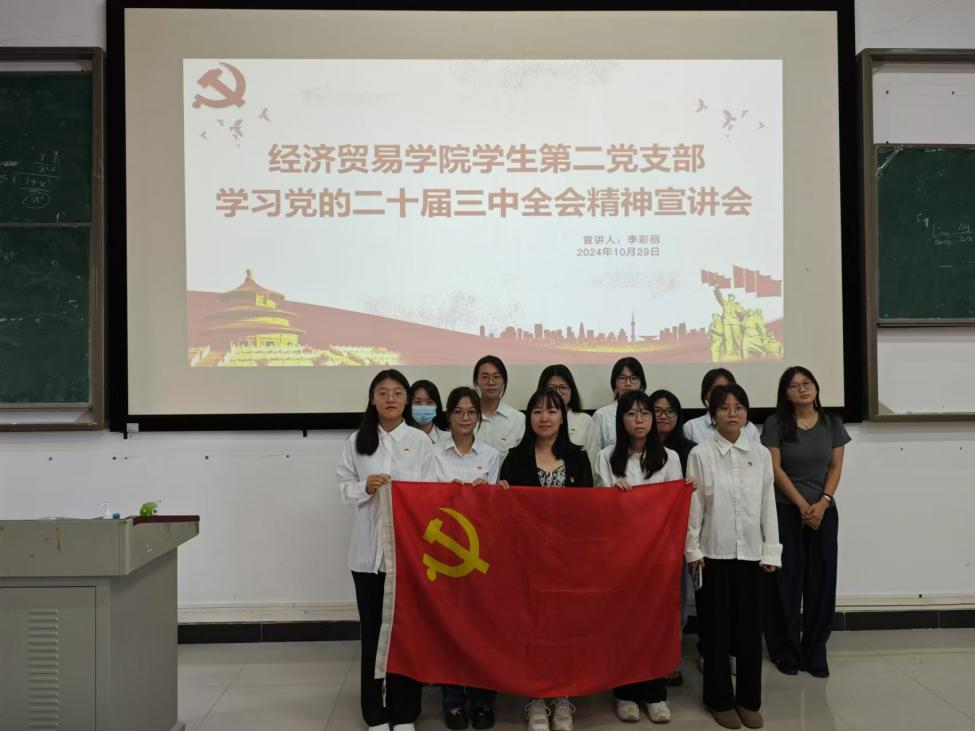为深入学习贯彻党的二十届三中全会精神,经济贸易学院学生第二支部分别于2024年10月29日与10月31日,采用线上线下融合的形式,成功举办了两场学习贯彻党的二十届三中全会精神专题宣讲,激励广大学生党员在深刻思考与实践探索中汲取前行力量。