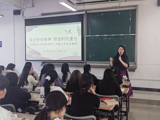 为深入学习贯彻党的二十届三中全会精神,深刻理解全会关于进一步全面深化改革、推进中国式现代化的战略部署,扎实做好全会精神学习宣传工作,有力有效推动全会精神入脑入心,凝聚青春奋进之力,11月12日下午,经济贸易学院院长蒋晶于明德楼2-502课室为24级新生代表讲授“思政第一课”。