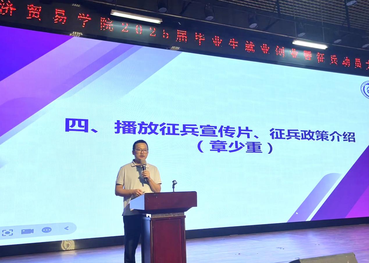辅导员章少重进行征兵政策的宣讲,帮助同学们进一步了解大学生应征入伍的优惠政策和报名流程。企业代表们依次进行了宣讲。