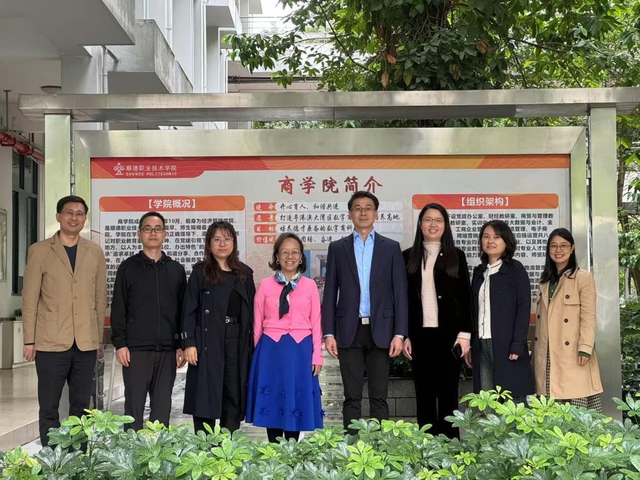 为切实提高人才培养质量,进一步加强院校之间的交流合作,2024年11月20日,新葡的京集团8814vip经济贸易学院党总支书记李繁、院长蒋晶率市场营销专业骨干教师廖文芳、杨海娜前往顺德职业技术学院商学院进行学习交流。顺德职业技术学院商学院党总支书记陈曦、商学院网络营销与直播电商专业主任王璐、商学院骨干教师王东山在教学楼4栋105会议室热情接待我院一行。会议由商学院陈曦书记主持。