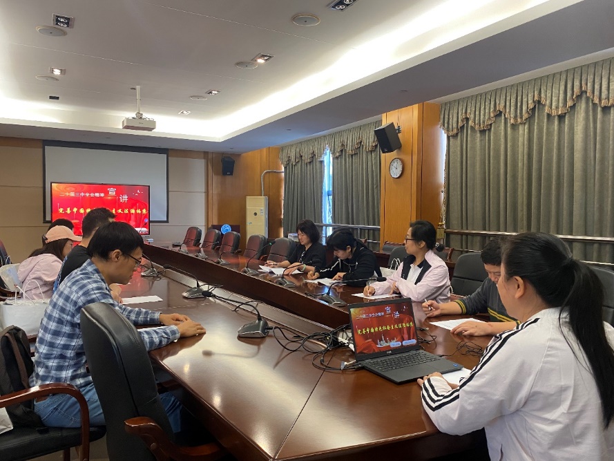 为深入学习贯彻党的二十届三中全会精神,积极响应学校党委开展党的二十届三中全会精神“六队百人”宣讲行动的号召,12月5日上午,经贸学院教师第一党支部在明德楼1-201会议室开展党的二十届三中全会精神宣讲专题党课,主题为“完善中国特色社会主义法治体系”。此次会议由教师第一党支部书记廖晓虹同志主讲,除了支部党员积极参与之外,会议还邀请了经贸学院商贸系副主任谷少永、电子商务专业带头人方文超一起学习讨论。
