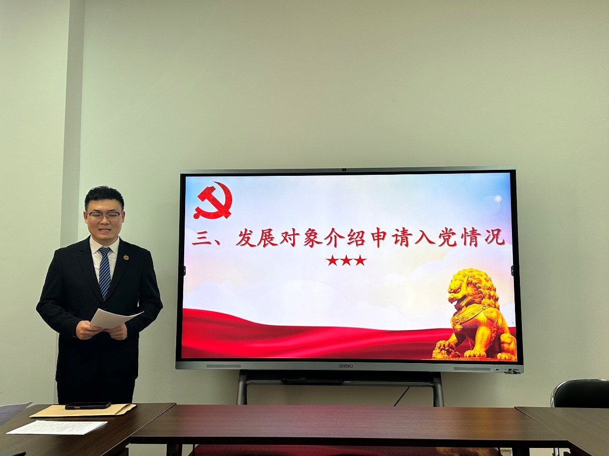 会议开始前,全体起立奏唱国际歌。廖晓虹组织学习了党的二十届三中全会精神,并宣布讨论是否接收苏德坤同志为预备党员。