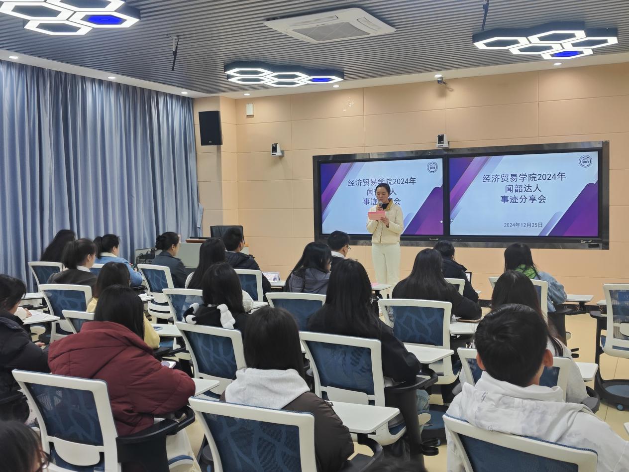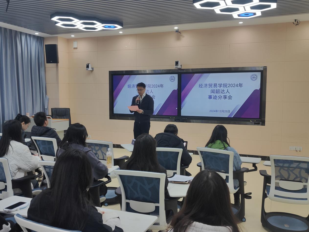 为深入学习贯彻党的二十届三中全会精神,引领经济贸易学院学子凝心聚力、奋发进取,充分发挥优秀学子的示范引领作用,激发广大学生的学习热情,提高我院学生的学习能力,营造良好的学习氛围,12月25日上午,经济贸易学院在明德楼1区316成功举办了2024年“闻韶达人”事迹分享会。经济贸易学院党总支书记李繁、党总支副书记龚云、学工办主任黄小奇,以及全体辅导员老师参加本次活动。