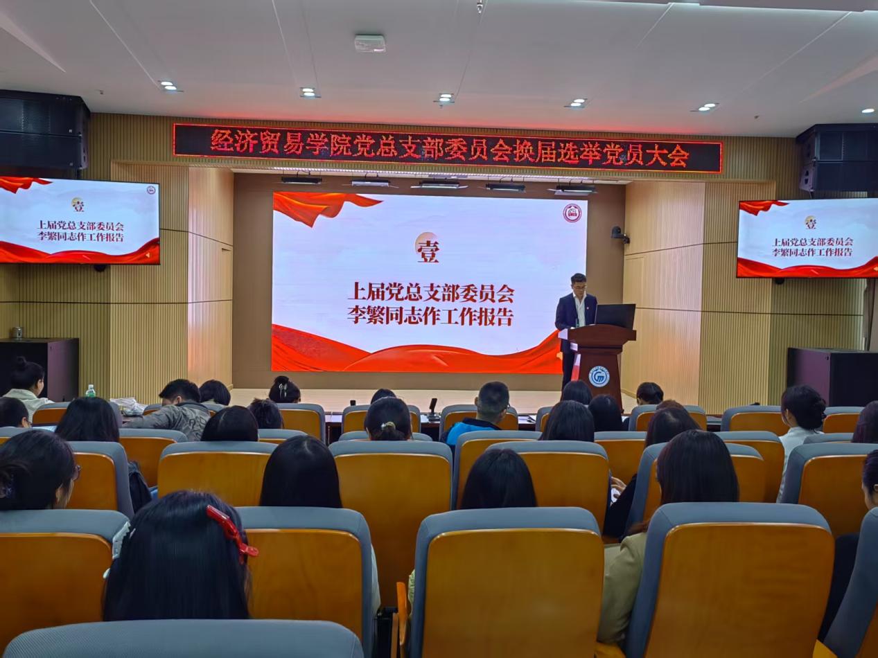 会议在庄严的国歌声中开始。会上,经济贸易学院党总支书记李繁代表经济贸易学院党总支部委员会向党员大会作了工作报告。报告指出,近年来,经济贸易学院党总支始终坚持“实”的导向,抓政治强根本,在筑牢对党绝对忠诚上旗帜鲜明;始终发扬严实作风,在打造坚强战斗堡垒上持续用力;始终聚焦实际成效,抓融合强质量,在服务学校发展大局中率先垂范。报告强调,在学院全体党员的共同努力下,经济贸易学院党总支理论武装持续强化,思想根基不断筑牢;各项工作部署扎实落实,党建活动有效开展;党风廉政建设深入有效,防腐拒变能力持续增强;支委会功能切实发挥,关心关爱有效融入党员教育管理;党建带动强劲有力,经济贸易学院党总支及各支部党员“两个作用”发挥明显,经济贸易学院党总支建设成效和服务学校高质量发展的水平得到全面提升。报告最后号召学院全体党员继续发扬“寻真求是,格物致知”的校训精神,同心同向、踔厉奋发、开拓进取,为奋力谱写学校高质量发展新篇章贡献力量。