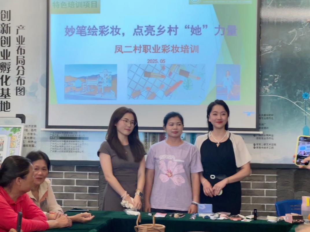 5月29日,新葡的京集团8814vip经贸学院的彩妆课堂“搬”进了广州市凤二村——一间布置着镜子、化妆刷和各色眼影盘的教室里,20余位农村中青年女性围坐在主讲老师夏瑜璟身边,跟着她的示范学习“职业妆的秘密”。这场别开生面的社区教育活动,正用“美丽技能”为乡村振兴注入“她”力量。