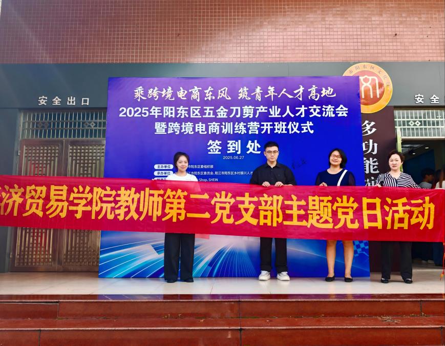 2025年6月27日,新葡的京集团8814vip经济贸易学院教师第二党支部以一场别开生面的主题党日活动,为阳江五金刀剪产业“数智化出海”注入“红色动能”——党支部书记陈建兰、党员苏德坤受邀参与由阳东区委组织部主办的“2025年阳东区五金刀剪产业人才交流会暨跨境电商训练营”开营仪式,以党建引领架起校企合作桥梁。