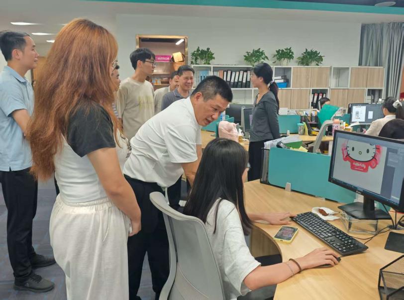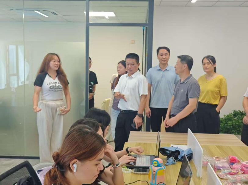 在考察过程中,唐毓秋副校长一行参观了公司的跨境电商业务部、产品设计业务部及产品展示厅,详细了解了学生在实战营中的学习成果和实践表现。唐毓秋对学生们将课堂知识转化为实践能力的效果给予了高度评价,并鼓励他们珍惜实训机会,以工匠精神打磨专业技能,努力成长为兼具理论深度与实践能力的复合型人才。