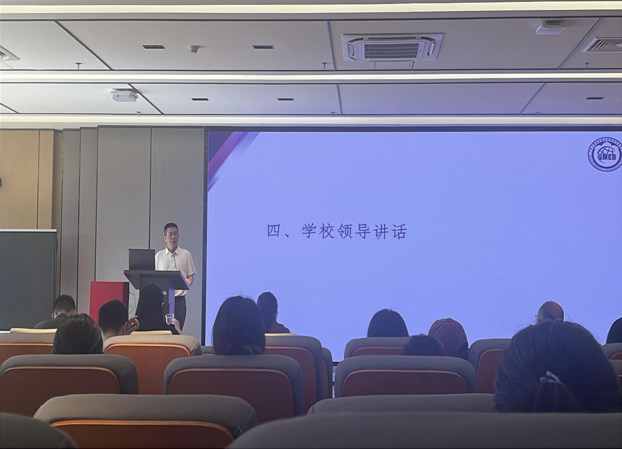 为进一步学习贯彻党的二十大和二十届二中、三中全会精神,明确新学期发展目标,凝聚全院共识,推动高质量发展,9月2日下午,经济贸易学院在白云校区图书信息楼629会议室召开2025-2026学年第一学期全体教职工大会,学校党委委员、副校长唐毓秋及经贸学院全体教职工出席会议。会议由经贸学院院长蒋晶主持。