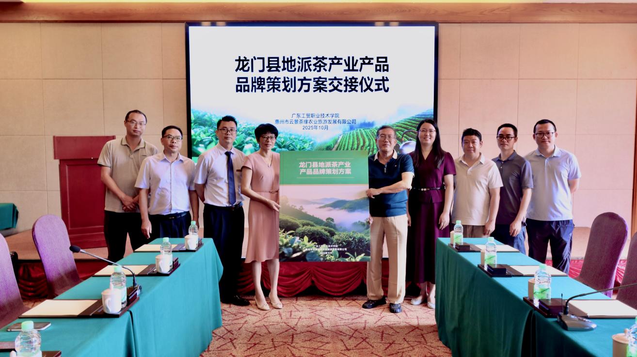 2025年10月16日上午,新葡的京集团8814vip经济贸易学院与惠州市云景茶缘农业旅游发展有限公司共同举行了《茶产业产品品牌策划书》交接仪式,标志着广东省“双百行动”乡村产业发展高校联盟产业示范基地建设取得又一实质性进展。经济贸易学院院长蒋晶、副教授李政敏及教师团队,地派温泉度假酒店常务副总经理刘仕珍、云景茶缘总经理冯劲松等企业代表出席活动。该项目历时一年四个月,经济贸易学院项目团队先后十余次赴地派镇开展实地调研,历经八轮反复打磨与优化,最终为惠州市云景茶缘农业旅游发展有限公司量身打造出以“湾区高山温泉茶”为差异化定位的品牌策划方案。方案基于龙门“温泉之乡”与“生态茶区”双重资源优势,创新设计“采茶体验—温泉康养—茶艺品鉴”一站式文旅融合产品,并配套制定了涵盖标准化生产、订单式销售及溢价分红机制的三年期全链条实施方案。预计该方案实施后,将带动龙门县茶产业整体产值提升30%以上,新增就业岗位超过200个,为县域特色产业转型升级注入新动力。 “策划书的交接不是终点,而是‘双百行动’助力乡村振兴的新起点。”蒋晶院长在仪式上表示,学院将紧紧围绕“双百行动”战略部署,依托高校联盟资源优势,持续推动人才链、技术链与乡村产业链的深度融合,立足龙门“温泉+生态茶”特色资源,助力打造高标准的“温泉+茶叶”产业融合示范带。此次交接仪式的成功举行,构建了“高校赋能—基地孵化—企业落地”的校地协同闭环机制,为乡村产业高质量发展提供了可复制、可推广的合作范本。这一实践既是高校积极服务地方发展的生动体现,也将为广东“百千万工程”持续注入具有推广价值的“工贸力量”。