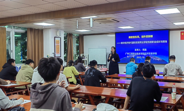 黄俊总经理在致辞中回顾了校企合作历程,强调现代学徒制人才培养为企业拓展国际市场注入关键动能。经贸学院院长蒋晶讲授“思政第一课”,深入解读数字经济时代国贸专业的变革与机遇,引导学生将职业规划融入国家外贸高质量发展战略,明确产教融合背景下“以专业服务对外开放大局”的育人目标。