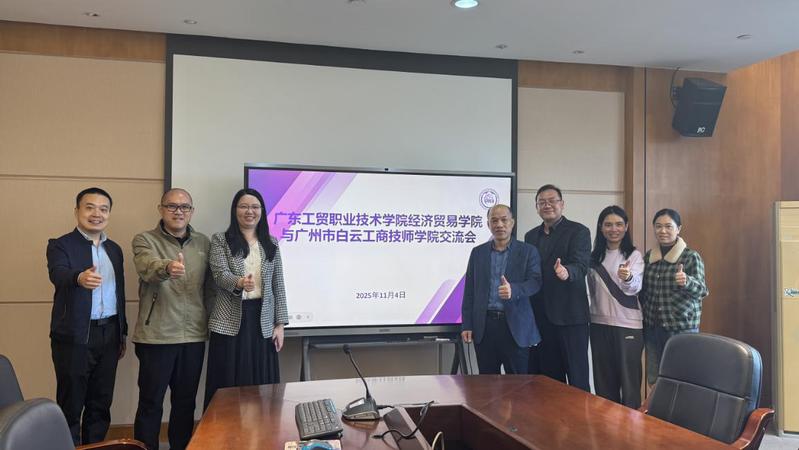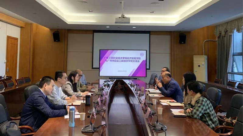 11月4日,广州市白云工商技师学院副校长周强带队一行赴经济贸易学院开展考察交流,旨在借鉴学院在专业(群)建设、校企合作及产教融合等方面的先进经验。经济贸易学院院长蒋晶、副院长李波及电子商务专业骨干教师欧志敏参会。