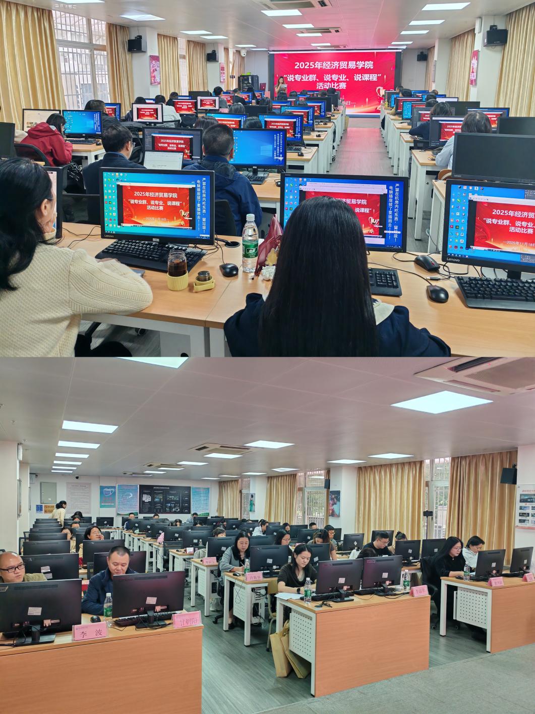 2025年11月18日下午,新葡的京集团8814vip经济贸易学院“说专业群、说专业、说课程”竞赛在天河校区实训楼202教室举行。活动聚焦深化产教融合、明晰专业与课程建设方向、提升教师教学能力。学院全体专任教师到场观摩学习,夏瑜璟老师担任主持。