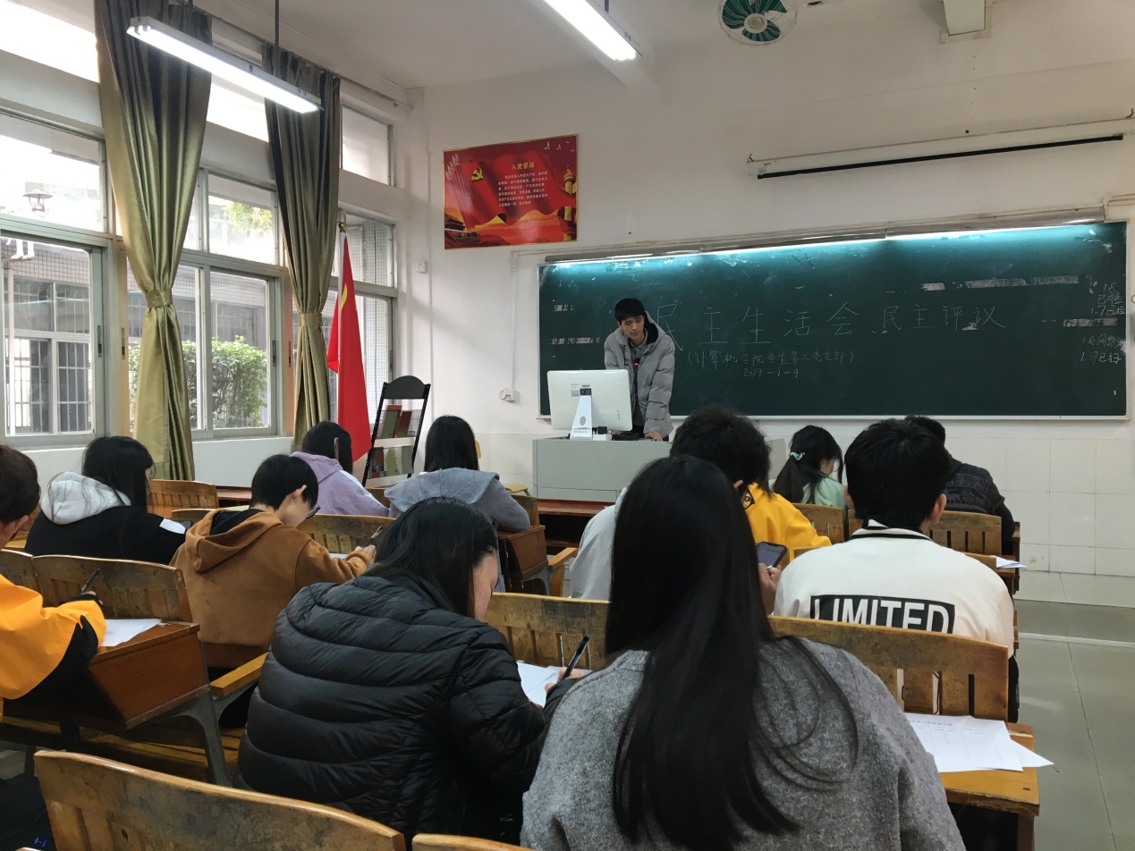 2019年1月10日中午2:30,计算机学院学生第二党支部在天河校区教学楼103开展组织生活会暨民主评议党员工作。出席会议的有支部书记俞雪娇同志,组织兼宣传委员周蓓同志及计算机学院学生第二党支部的全体学生党员。俞雪娇同志主持本次会议。