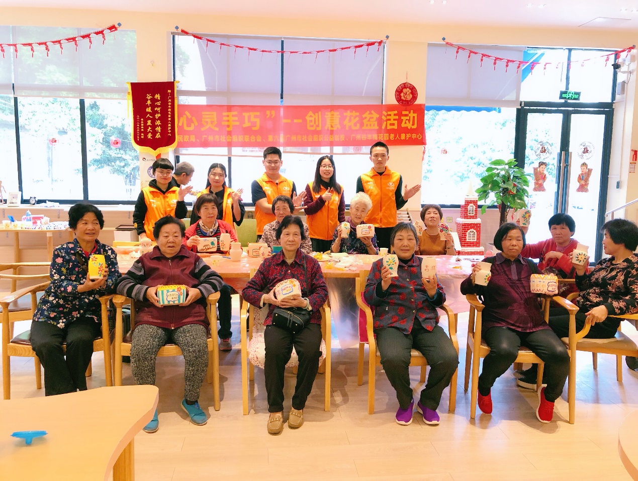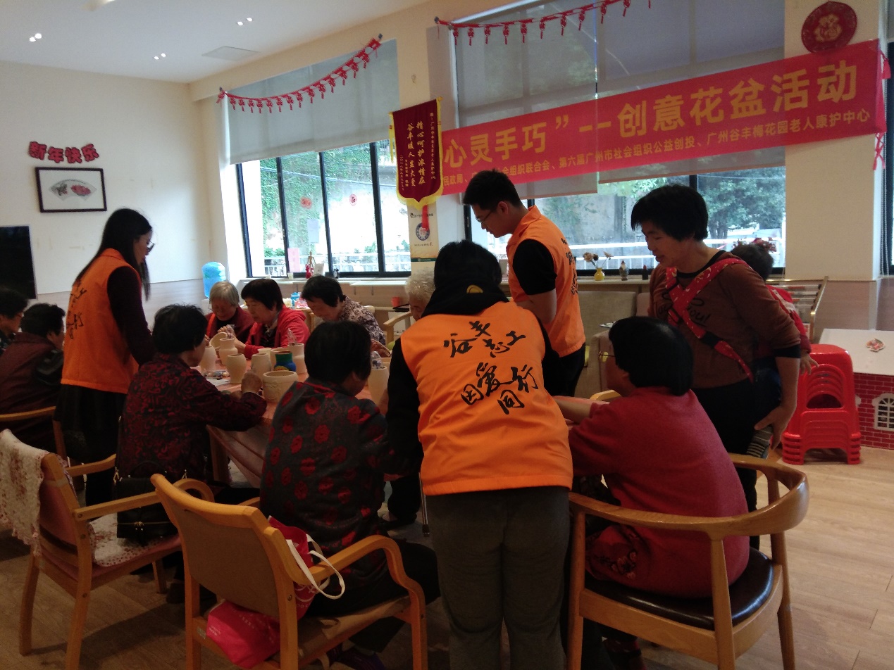 为丰富长者的日常生活,计算机学院青协协助梅花园谷丰养老院开展了“心灵手巧”创意花盆的DIY活动。