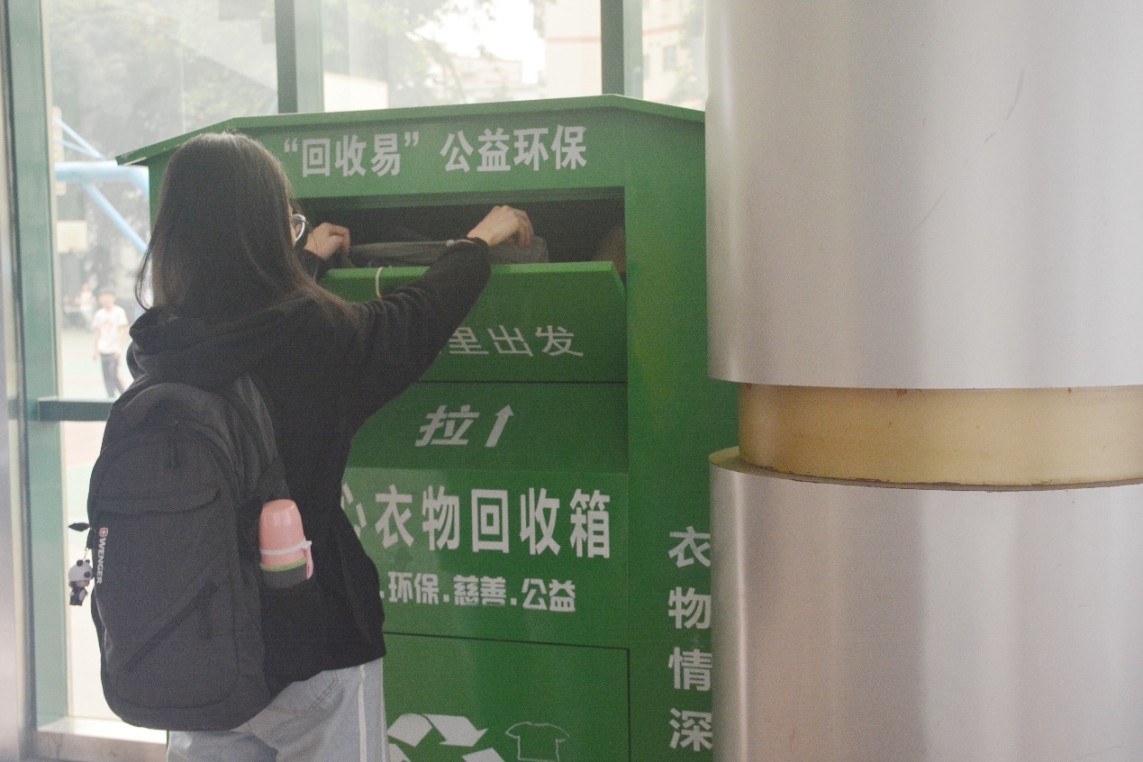 该活动一直持续到晚上9点。整个回收过程,进展顺利,收获满满!同学们热情地捐赠衣物,并为小青们的工作点赞、加油!