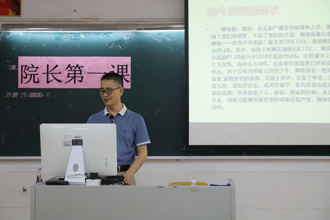 根据《广东省教育厅关于做好2019年春季学期高校党委书记、校长和院(系)党组织书记、院长(系主任)上第一堂思想政治理论课工作的通知》,计算机学院院长余棉水教授于2019年6月11日在天河校区教学楼103为新一批入党积极分子开展院长第一课,余院长进行了一堂以网络安全教育为主题的讲座。