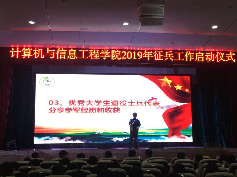 为响应国家号召,广泛开展大学生征兵宣传工作,鼓励更多大学生投身军营,计算机学院于6月25日在天河东区礼堂举行大学生征兵报名启动仪式。计算机学院党总支书记张宁、副书记张艳和三个年级的学生代表参加了本次启动仪式,会议由计算机学院辅导员苏建荣主持。