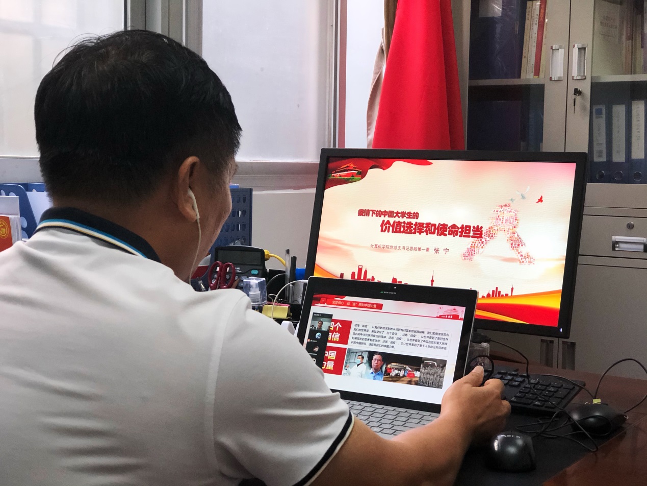 7月20日下午4点,计算机与信息工程学院党总支书记张宁同志线上为计算机学院党总支第34期入党积极分子党课培训班学员讲授了一堂以“疫情下的中国大学生的价值选择和使命担当”为专题的党课。
