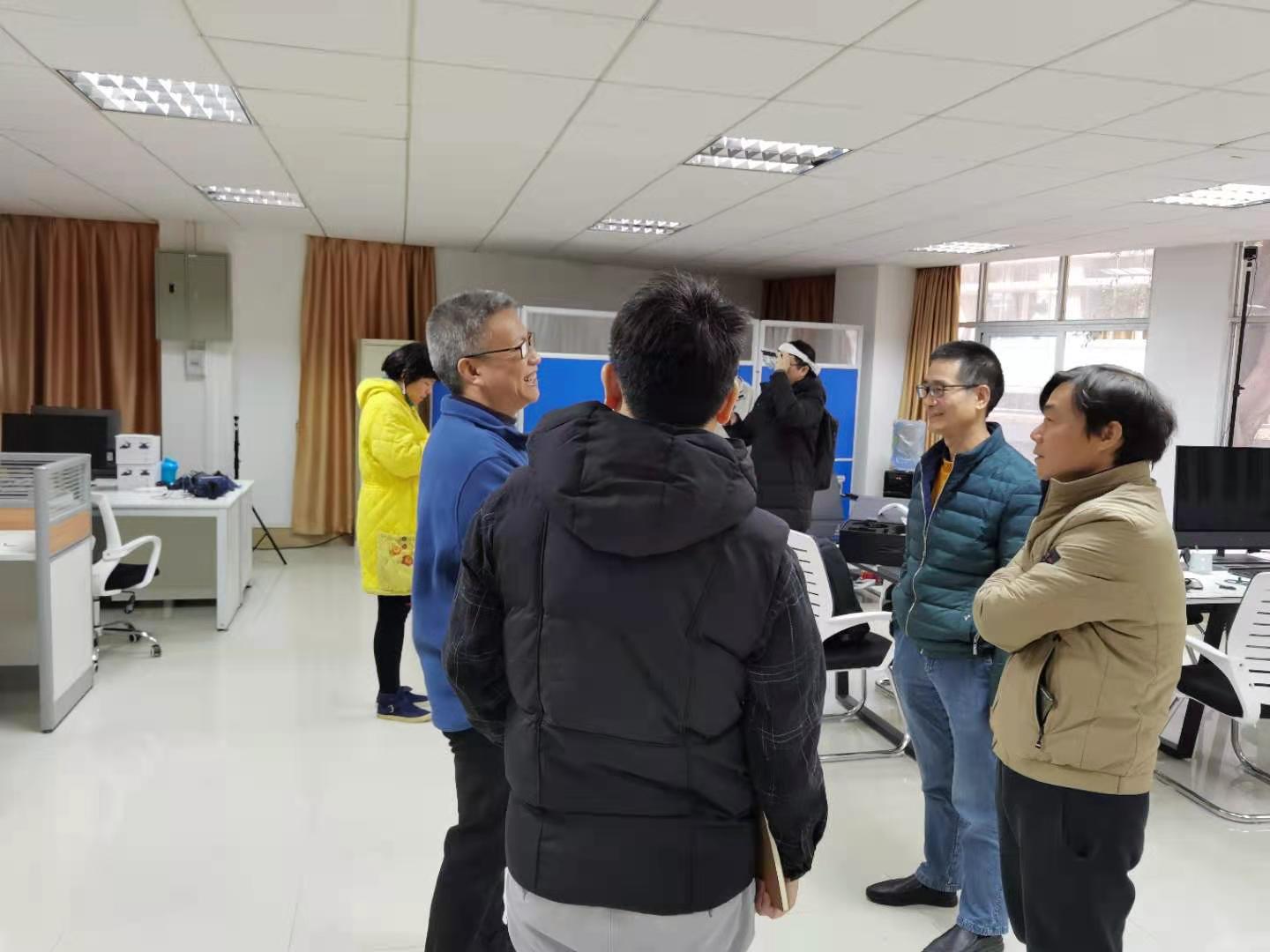 在交流会上计算机学院领导、教师与番职院黄主任等一行进行了多方面交流,就VR虚拟现实技术实训基地建设经验、虚拟现实专业建设、人才培训、科研合作、虚拟现实实训项目开发等方面进行深入的交流探讨,随后黄中伟主任一行参观考察了东校区计算机与信息工程学院实训中心,计算机学院负责人陪同并详细介绍了计算机与信息工程学院VR/AR实训中心的建设及发展情况,实地演示和体验了VR/AR实训设备,包括VR Box2020最新内容包、IdeaVR教学引擎、G-Space大空间多人追踪系统等。