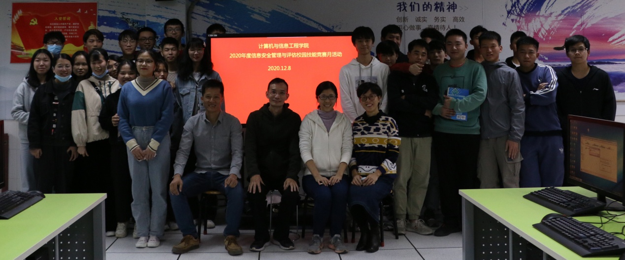 2020年12月7-8日,计算机与信息工程学院网络工程系主办的第十二技能竞赛月信息安全管理与评估职业技能竞赛在信息安全实训室(教学楼305机房)成功举办,比赛分初赛和决赛两个阶段。本次竞赛对标省职业技能竞赛,增加了网络设备操作的题目,另外针对网络攻防能力的评估,通过搭建一个在线网络服务平台,检测学生识别漏洞与风险,以及开展现场网络攻击的能力和技巧,做到了与信息安全职业技能大赛的真实场景相衔接。来自19级信息管理安全专业、计算机网络专业的14支队伍共28人参赛,相关专业学生20多人现场观摩了比赛,信息安全与管理专业4位评委老师参与了本届技能竞赛月组织活动。最终5支队伍脱颖而出分获1-3等奖。