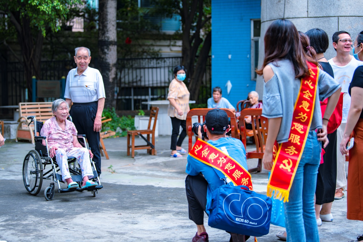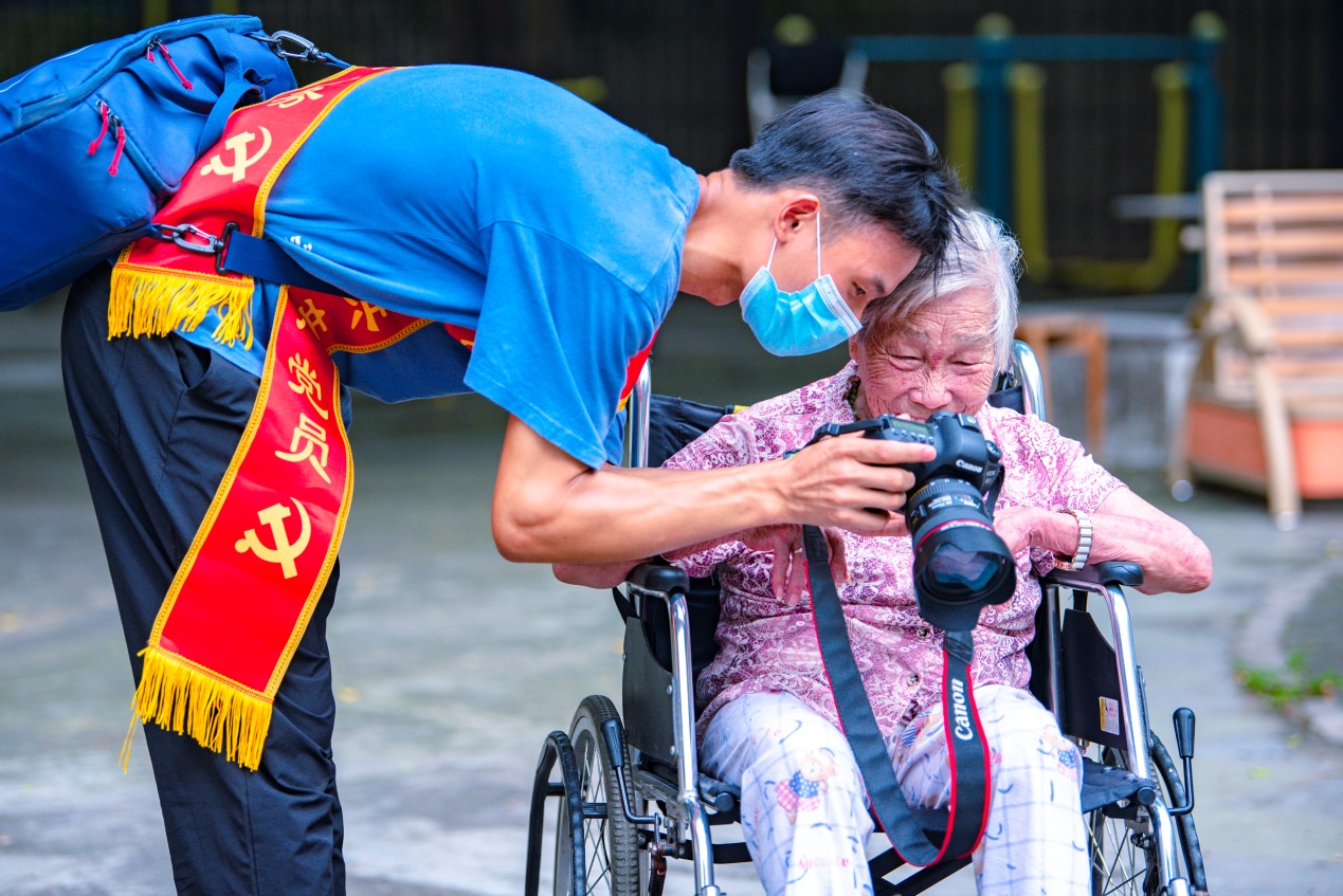 学生党员慰问老党员并拍照