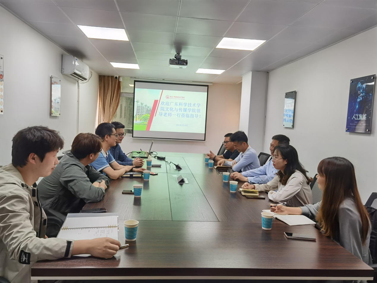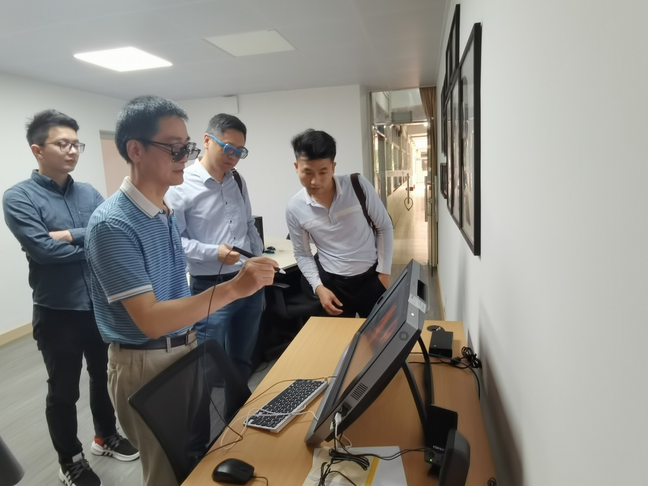 3月19日上午,广东科学技术职业学院文化与传媒学院向阳副院长一行五人来新葡的京官网基于VR/AR的工程素质教育虚拟仿真实训中心进行考察,就虚拟现实实训中心建设、虚拟现实技术在专业教学中的应用等进行了经验交流。计算机与信息工程学院院长余棉水,虚拟现实与数字媒体系主任周宇、骨干教师张坡、张宇辰等参加了交流。
