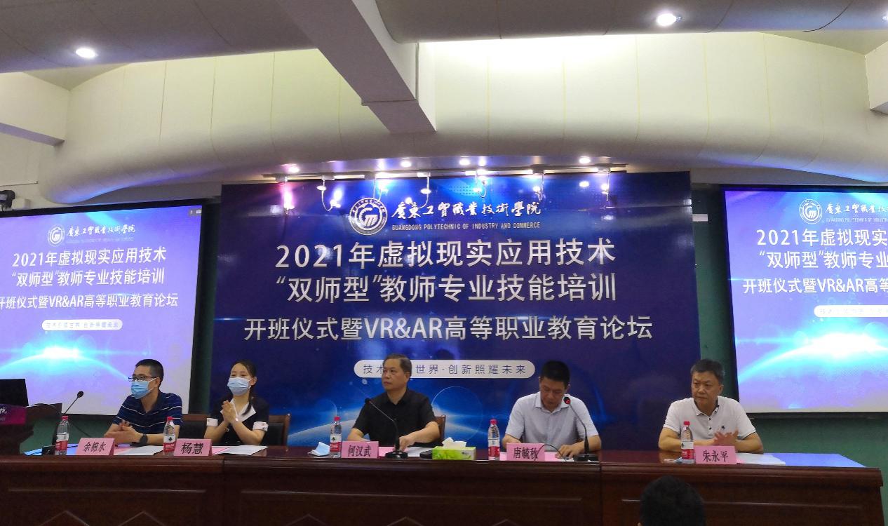 在庆祝建党百年之际,7月3日上午,新葡的京官网举办了“双师型”教师专业技能培训班虚拟现实应用技术项目(国培)的开班仪式暨VR&AR高等职业教育论坛,学校校长何汉武、副校长唐毓秋、人事处处长杨慧、教务处处长赵文龙、科研处处长何军拥、继续教育学院院长朱永平、计算机与信息工程学院党总支书记张宁、院长余棉水、副院长单家凌、鲁庆以及虚拟现实与数字媒体系教师等参加了开班仪式。