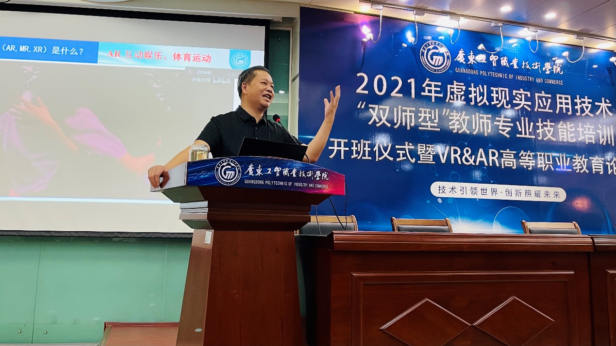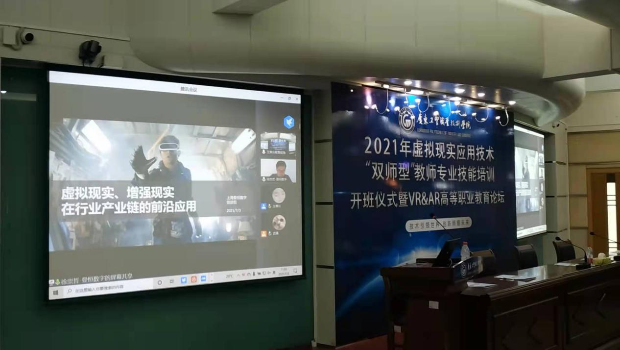 “虚拟现实应用技术培训”国培项目主要面向高职院校数字媒体、虚拟现实等专业教师,首日课程以开班仪式暨VR&AR论坛、线下举行+线上同步直播的方式进行,后续将开展20天的虚拟现实技术培训。课程安排既强调理论高度,又突出实践深度,力争让参培学员学有所获、学有所得。