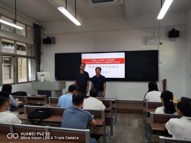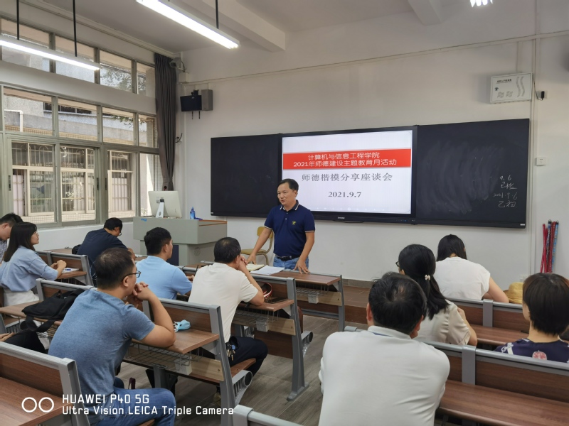 为持续深入学习贯彻习近平总书记“七一”重要讲话精神,贯彻省委教育工委、省教育厅在师德建设主题教育月活动启动仪式大会和学校师德建设主题教育月相关活动要求,9月7日下午,计算机学院在学校天河东区教学楼103举行师德楷模座谈会。座谈会由计算机学院党总支书记张宁主持,计算机学院全体新入职教师出席。