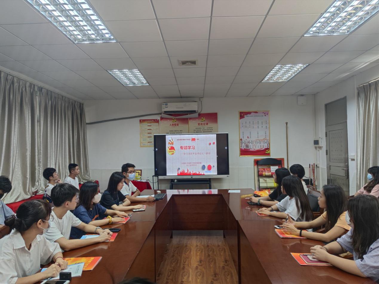 为深入学习习近平总书记在庆祝中国共产党成立100周年大会上的重要讲话, 2021年9月9日,计算机与信息工程学院团委书记代启兵组织19级、20级全体团支书在天河校区教学楼104开展了学习习近平总书记“七一”讲话专题学习。