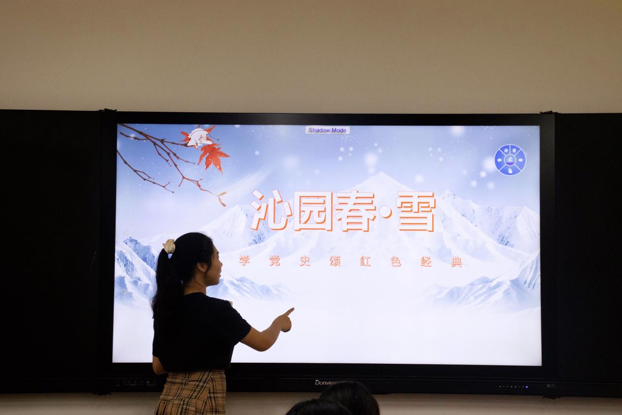 支部党员谢允菱同志讲解毛泽东同志的诗词《沁园春·雪》