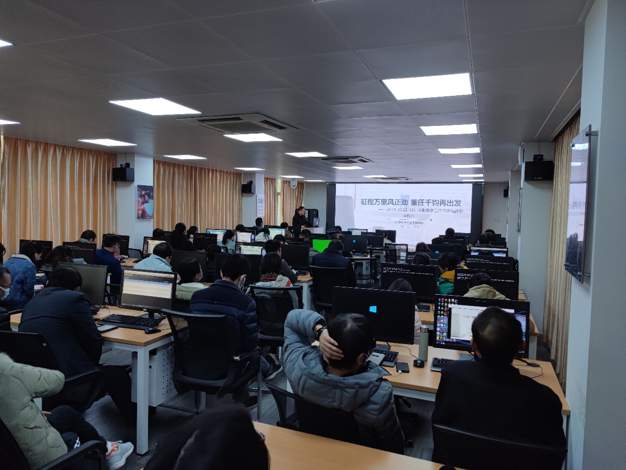 阳春布德泽,万物生光辉。2月24日下午,计算机与信息工程学院2022年春季新学期全体教职工大会在天河校区东区实训楼202课室召开。计算机学院班子成员张宁、余棉水、张艳、鲁庆、单家凌及全体教职工参加会议。会议由计算机学院党总支书记张宁主持。会前,负责联系计算机学院的学校党委副书记赵红专门对本次会议作了指示,并希望计算机学院全体师生在新的一年里在加强党的领导、思想政治建设、推动教学高质量发展等方面取得满意的成绩。