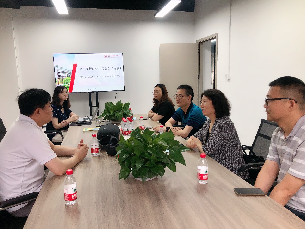为贯彻落实教育部关于“高校书记校长访企拓岗促就业”专项行动的工作部署,贯彻执行高校毕业生就业工作“一把手”工程,做好毕业生就业服务工作,5月11日下午,学校党委委员、副书记赵红、计算机与信息工程学院院长余棉水、副书记张艳、副院长鲁庆、数媒系主任周宇、毕业班辅导员俞雪娇一行到广东玉龙光碧文化传播有限公司、广州市萌酷科技有限公司开展走访调研。