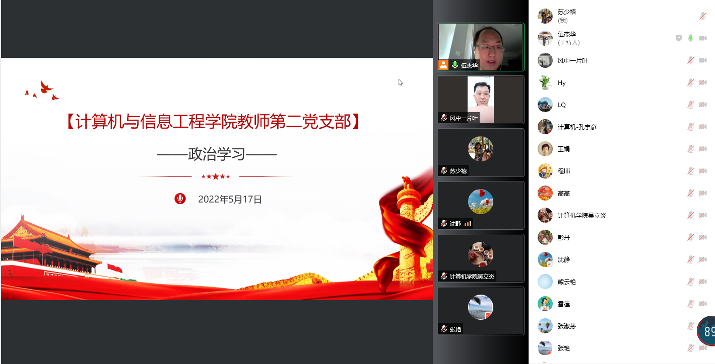 会议由支部书记伍杰华主持,另外支部张东波、张淑芬等老师党员做了学习心得的分享。