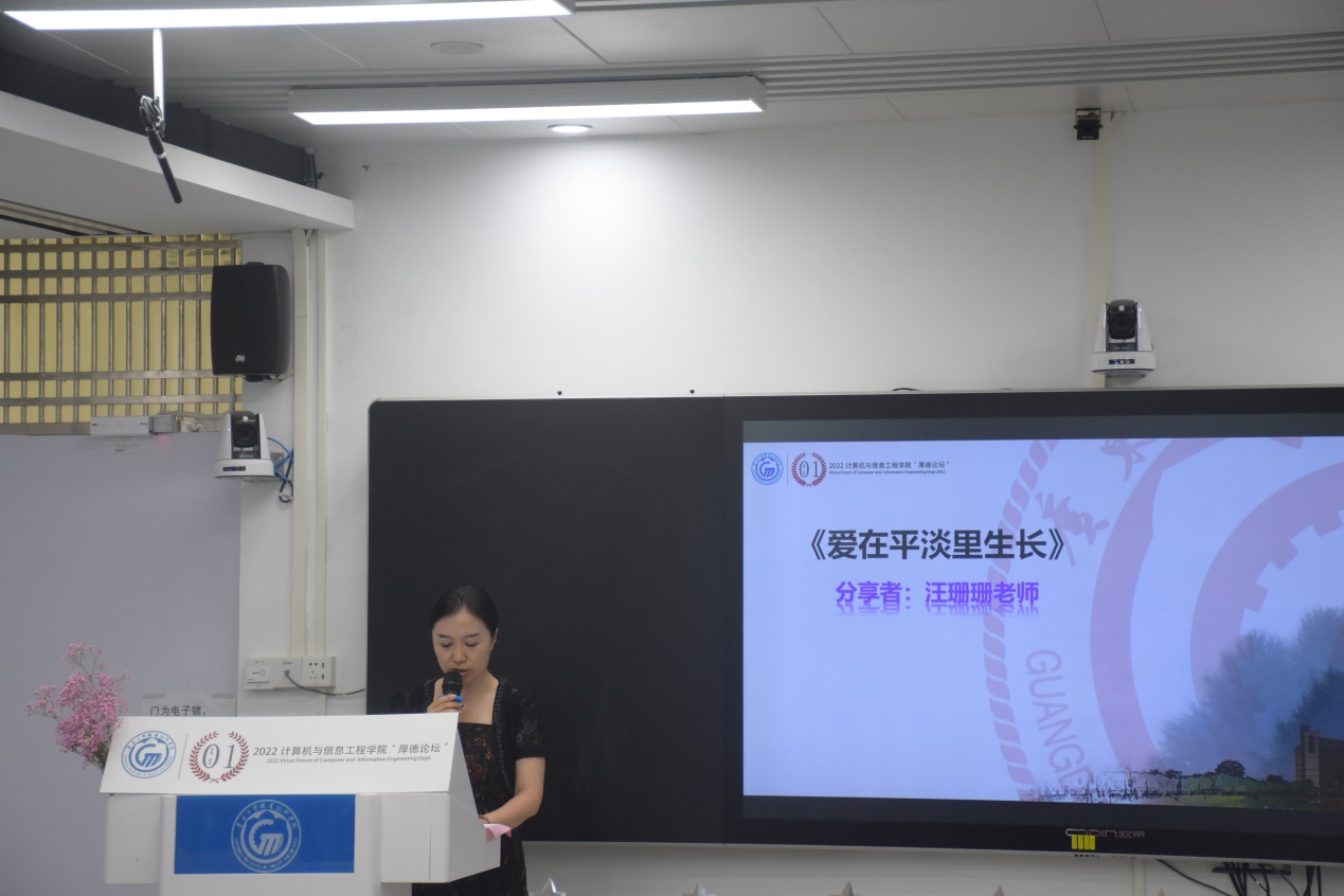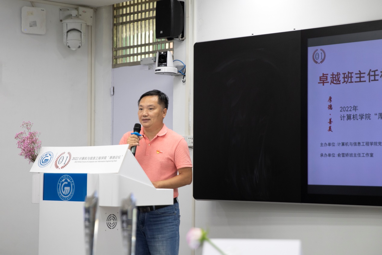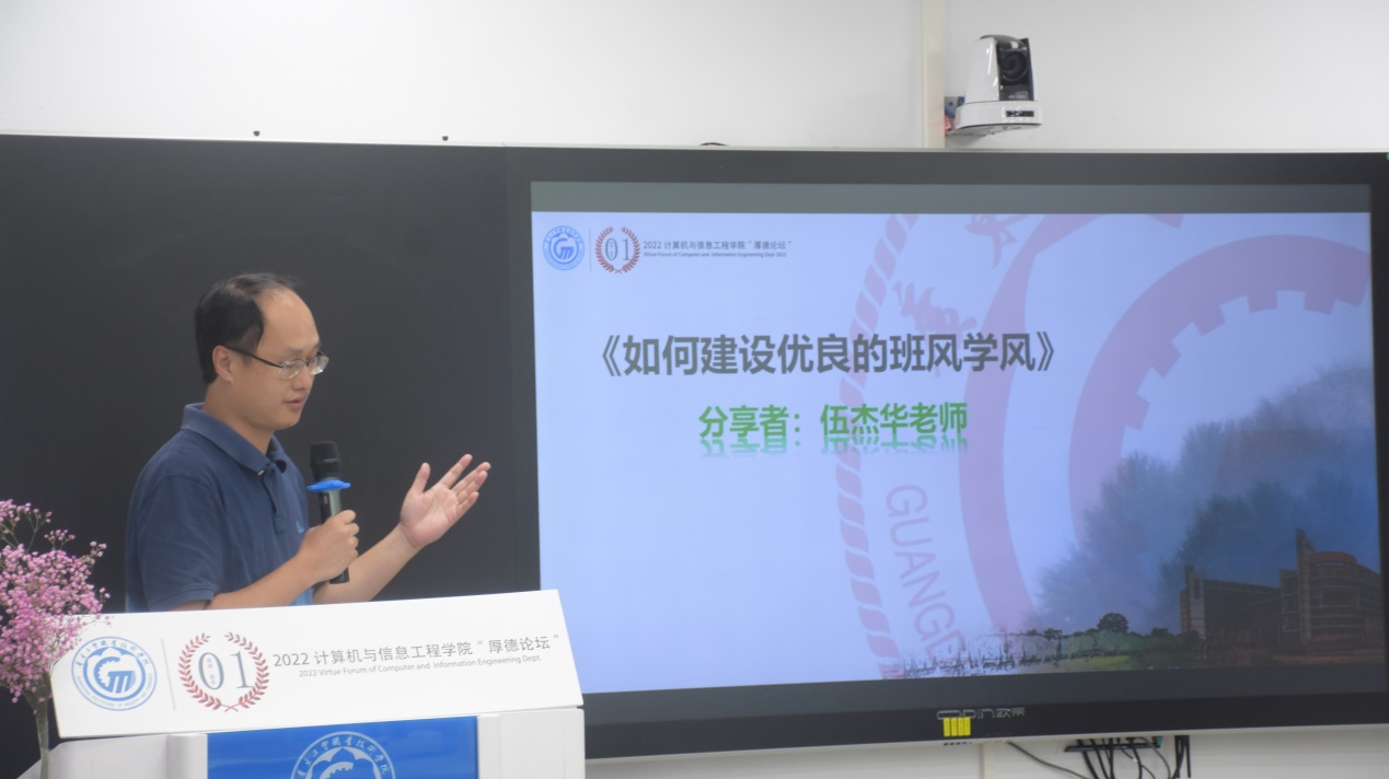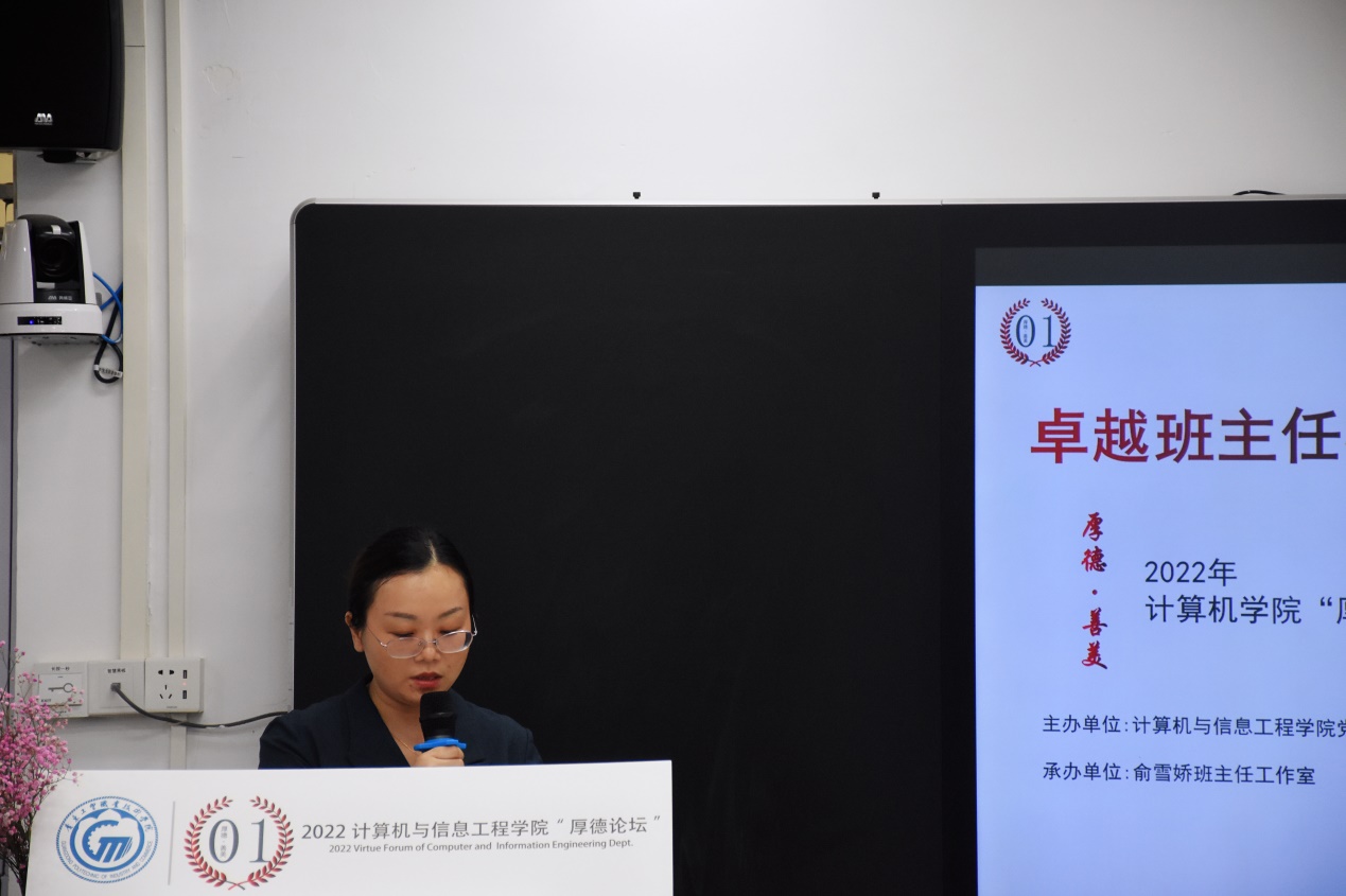 班级是教育教学的主阵地,班主任是学校立德树人的“基层领袖”。7月14日下午,由计算机与信息工程学院党总支主办、俞雪娇班主任工作室承办的“厚德论坛”在天河校区综合楼205举办。本次论坛的主题为“卓越班主任核心素养提升”。计算机学院党总支书记张宁、副书记张艳、全体辅导员及各年级班主任参加了活动,大家就班主任工作展开了深入的交流。