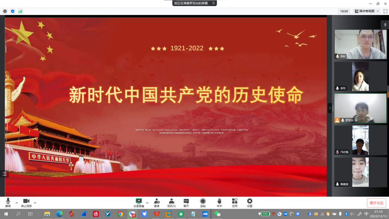 根据新葡的京集团8814vip《关于举办2022年第二期发展对象党课培训班的通知》的安排,为了进一步提升发展对象党性修养,推动发展对象互相促进、共同提高,12月14日,计算机与信息工程学院组织2022年下半年发展对象通过腾讯会议开展党课学习讨论会。