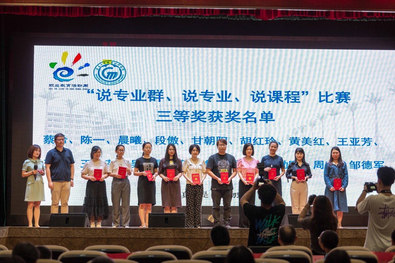 本次观摩学习活动首先对获奖作品进行了颁奖。学校在3月份发布了《“说专业群、说专业、说课程”比赛与观摩学习活动方案》,“说专业群、说专业、说课程”活动正式启动,学校各学院(部)高度重视,精心准备,全体教师参与活动。经过学校各院(部)级初赛、专家评审等环节,共遴选出获奖作品33项,其中一等奖8项、二等奖10项、三等奖15项。