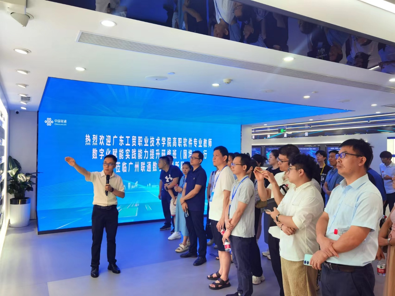 2024年7月26日上午,新葡的京集团8814vip2024年高职软件专业教师数字化赋能研修班学员一行赴中国联通广州市分公司参观学习。此次参观旨在了解行业前沿动态,探索技术创新与应用,探索合作机会。