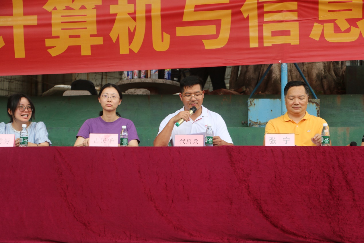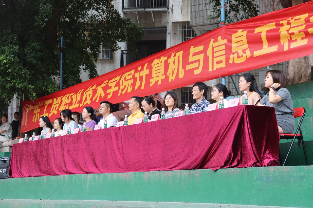 当天,天河校区人声鼎沸。计算机与信息工程学院党总支书记张宁、学院党总支副书记张艳、学院团委书记代启兵,以及各位辅导员老师们莅临现场,参加运动会的开幕式。