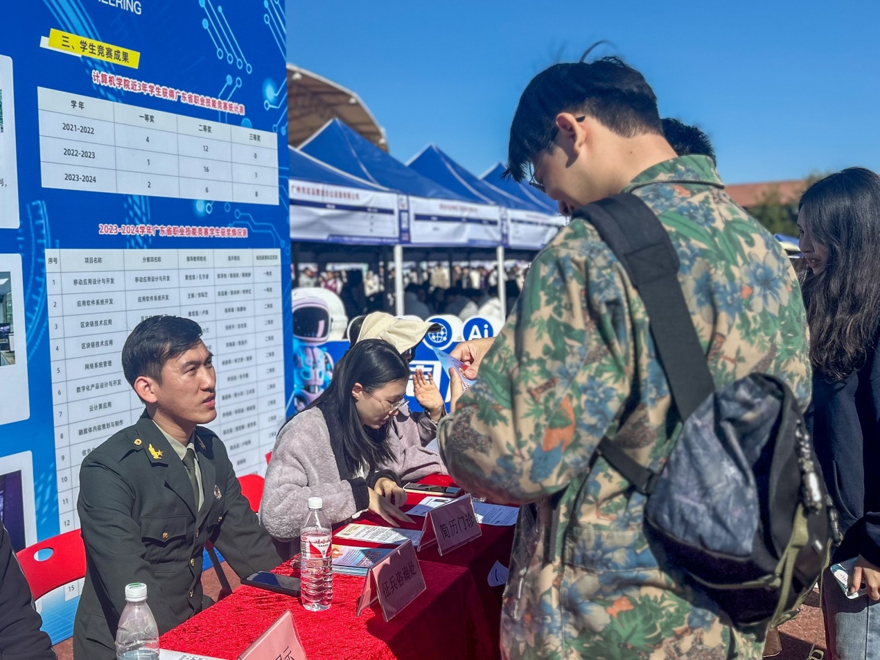 大学生参军入伍是服务国防和军队现代化建设的战略需要,也是实现高质量就业的有效渠道。学院在展位设置了“征兵咨询处”,老师和退役军人们细致的为同学解读入伍条件、待遇保障以及未来发展的相关政策,使同学们能够更加清晰了解入伍具体流程和要求。