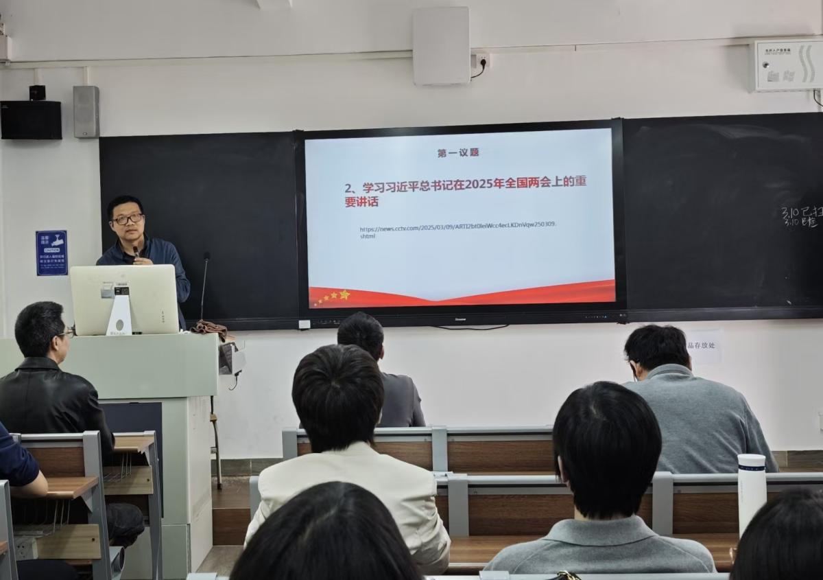 会议开展"第一议题"学习,首先由鲁庆同志领学习近平总书记近期重要讲话精神。首先学习了习近平总书记 2025年 1月6日在二十届中央纪委四次全会上的重要讲话精神,深刻领会"反腐败是最彻底自我革命"的核心要义,明确要贯彻严管党治党要求,构建常态化纪律教育机制,推动党员干部将党纪内化为行动自觉。随后,学习了习近平总书记在2025年全国两会上看望参加政协会议的民盟、民进、教育界委员时的重要讲话。针对人才供需动态变化,总书记要求教育系统"想在前、赶在前",通过前瞻规划实现人才培养与社会需求精准适配。与会教师深受鼓舞,纷纷表示将着力提升专业素养,创新技能人才培养模式,为输送高素质技术技能人才夯实基础。