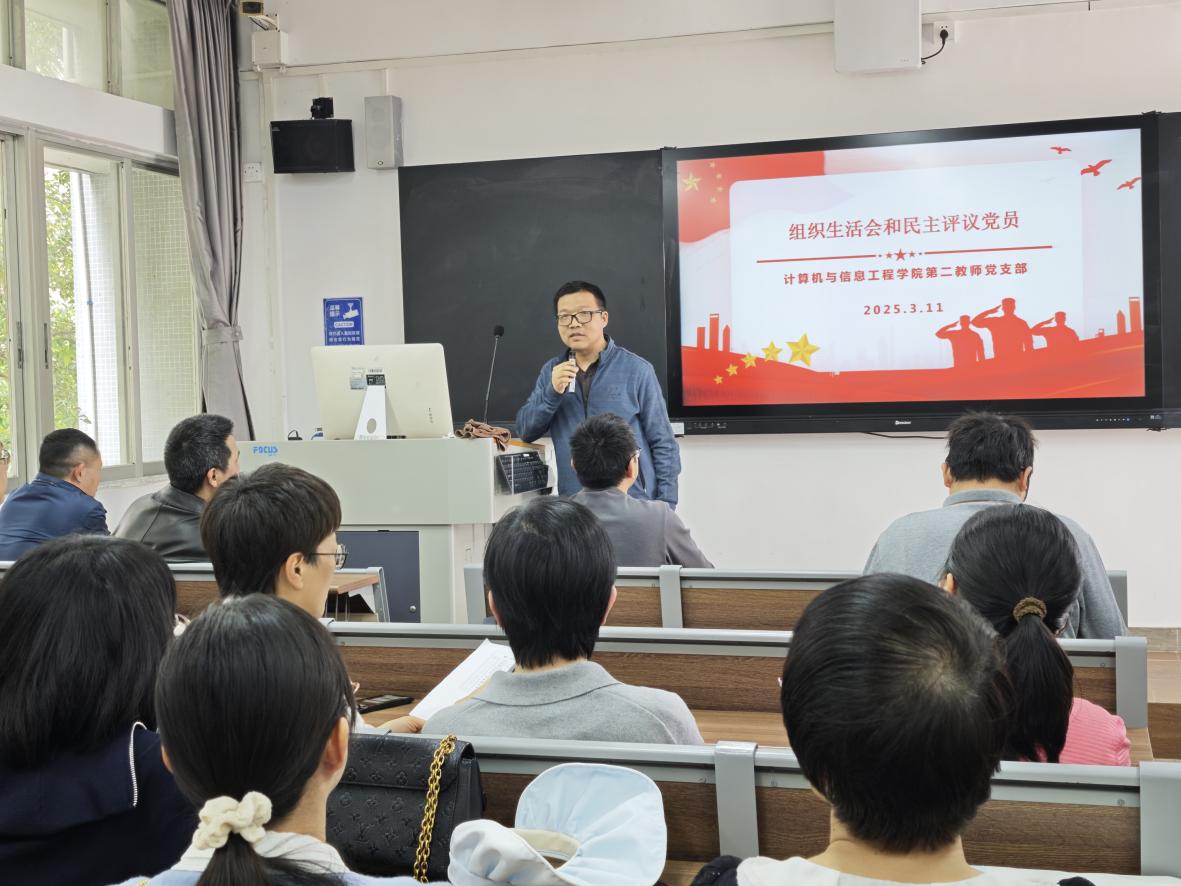 根据中共新葡的京集团8814vip委员会《2024年度基层党组织组织生活会和民主评议党员工作方案》部署要求,计算机与信息工程学院教师第二党支部于2025年 3月 11日在天河校区教301召开组织生活会暨民主评议党员大会。会议由党支部书记鲁庆主持,支部26名党员中22人到会,4人因公请假,符合组织生活会召开规定。