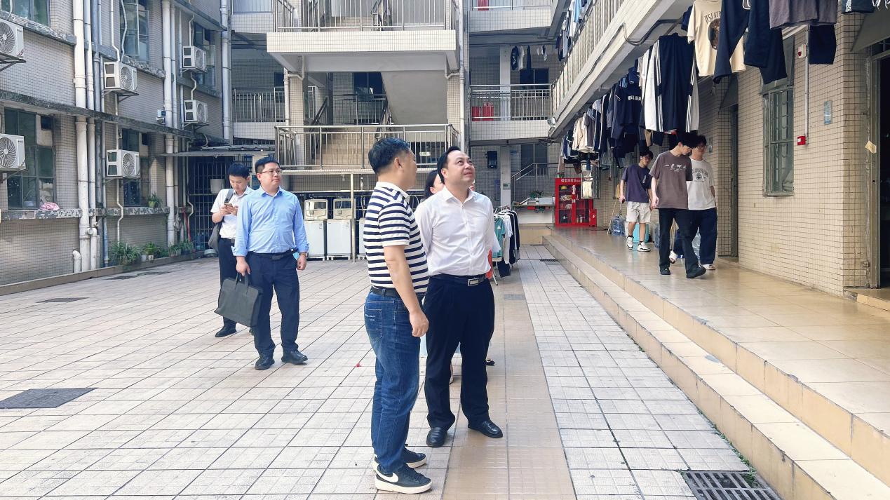 座谈会后,揭英荣在计算机学院领导班子的陪同下,走访了教学楼、实训楼和学生宿舍,实地调研教学管理、实训条件及学生生活保障情况。