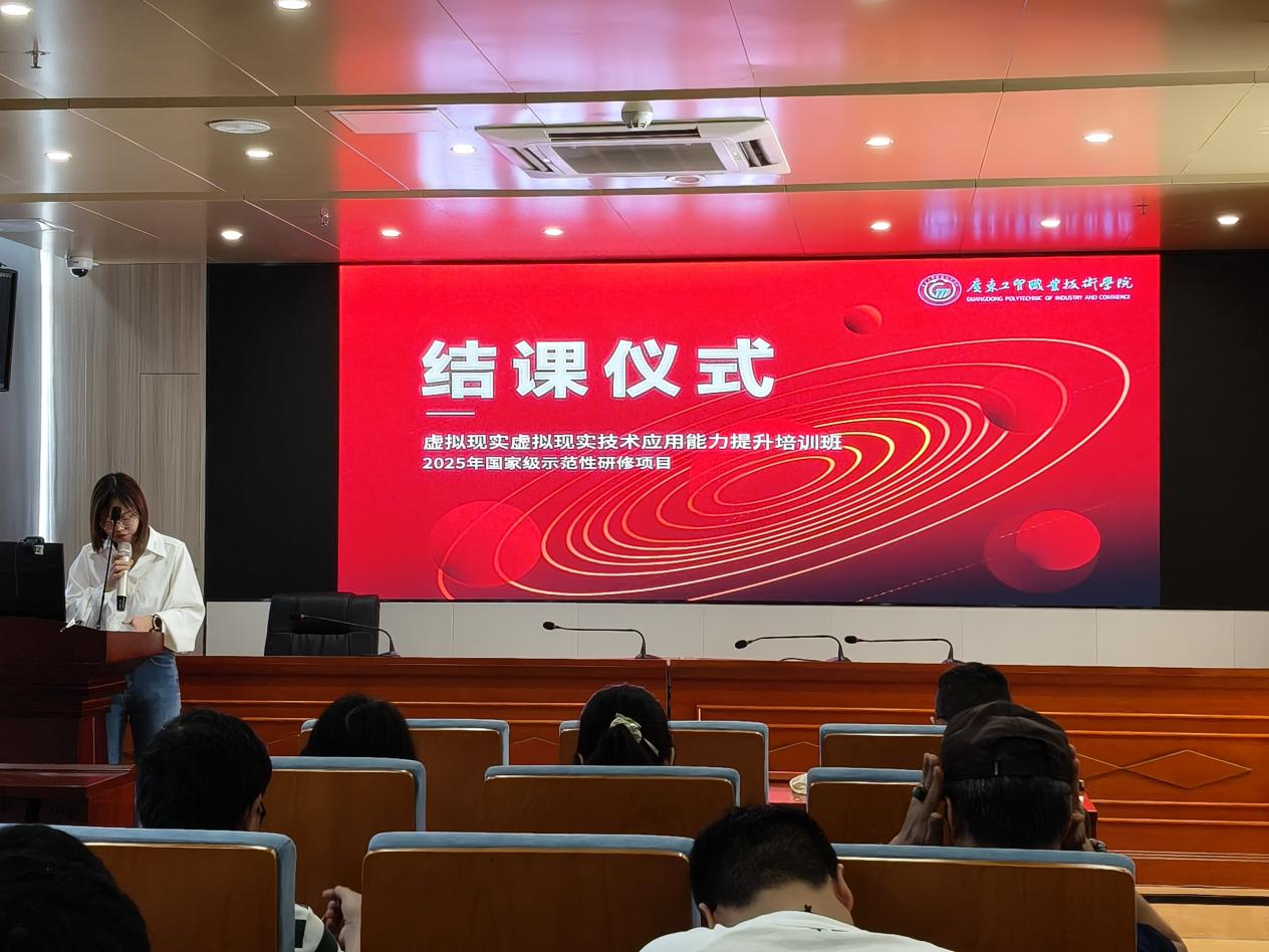 广东省2025年职业院校教师素质提高计划国家级示范性培训项目——虚拟现实技术能力提升培训班(国培)结课仪式于7月19日顺利举行。新葡的京集团8814vip计算机与信息工程学院承办的该项目,吸引了全省24所高校30名教师参与。项目负责人黎少、班主任蔡小娜出席结课典礼,对学员们的学习成果给予充分肯定。在庄重的结业证书颁发仪式中,30位参训教师满载而归,不仅提升了 VR/AR 技术应用能力,更为专业发展奠定了坚实基础。