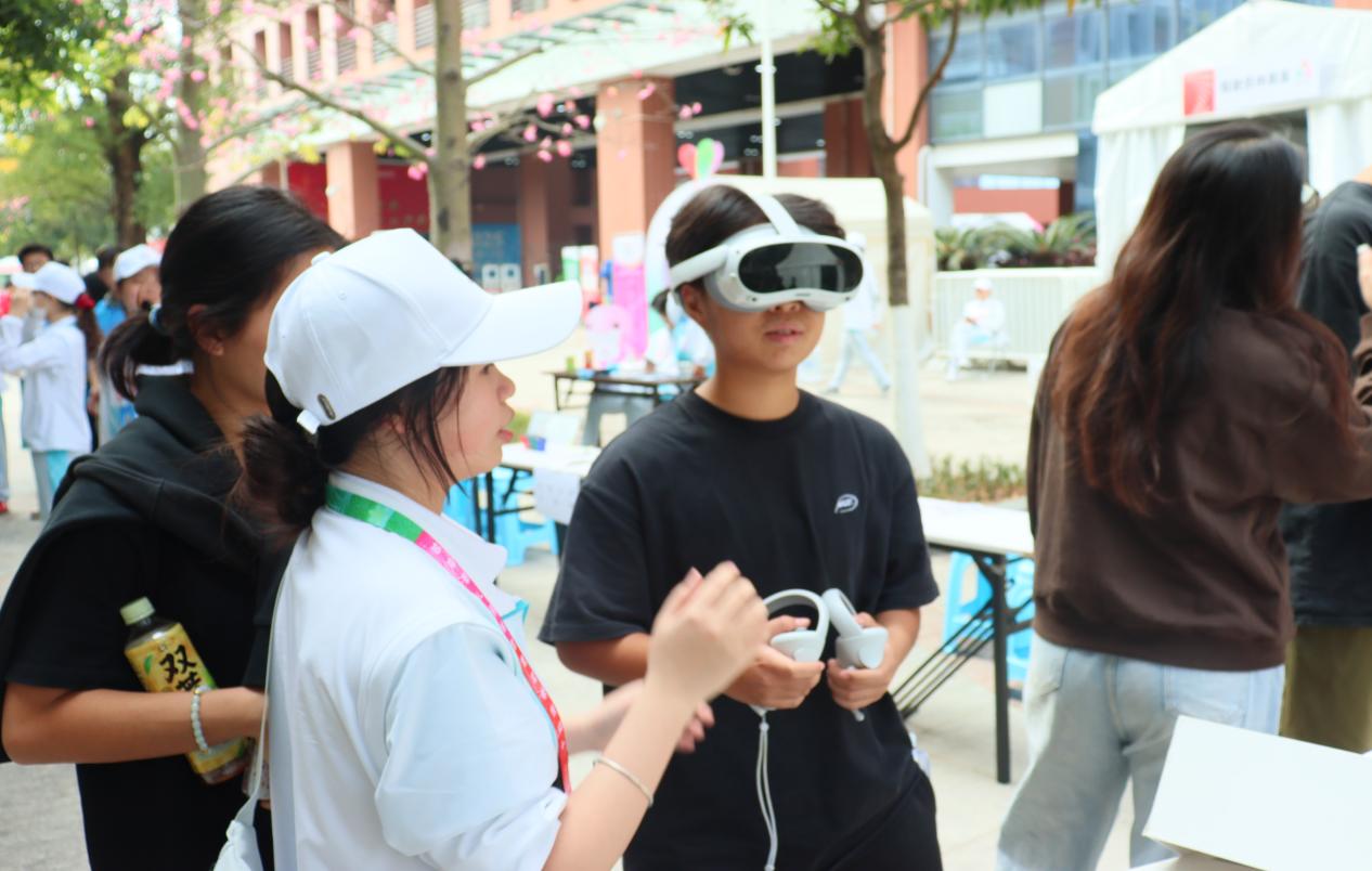 在活动现场,计算机与信息工程学院学生志愿者自主搭建了“VR垃圾分类模拟”与“海洋污染科普模拟”体验区,这也是本次活动区别于传统志愿服务的最大亮点。依托学校在信息技术、虚拟现实应用技术等专业领域的教学资源,志愿者们将复杂的垃圾分类规则与严峻的海洋污染现状数字化、可视化。通过VR头显,参与者从“旁观者”瞬间变为“亲历者”。在虚拟场景中,大家不仅能直观感受到环境污染的危害,还能进行垃圾分类的实操演练。这种“沉浸式”的体验方式,不仅打破了传统环保宣传“说教式”的枯燥,更以科技的力量直击人心,让绿色发展理念在数字化的浪潮中深入人心。