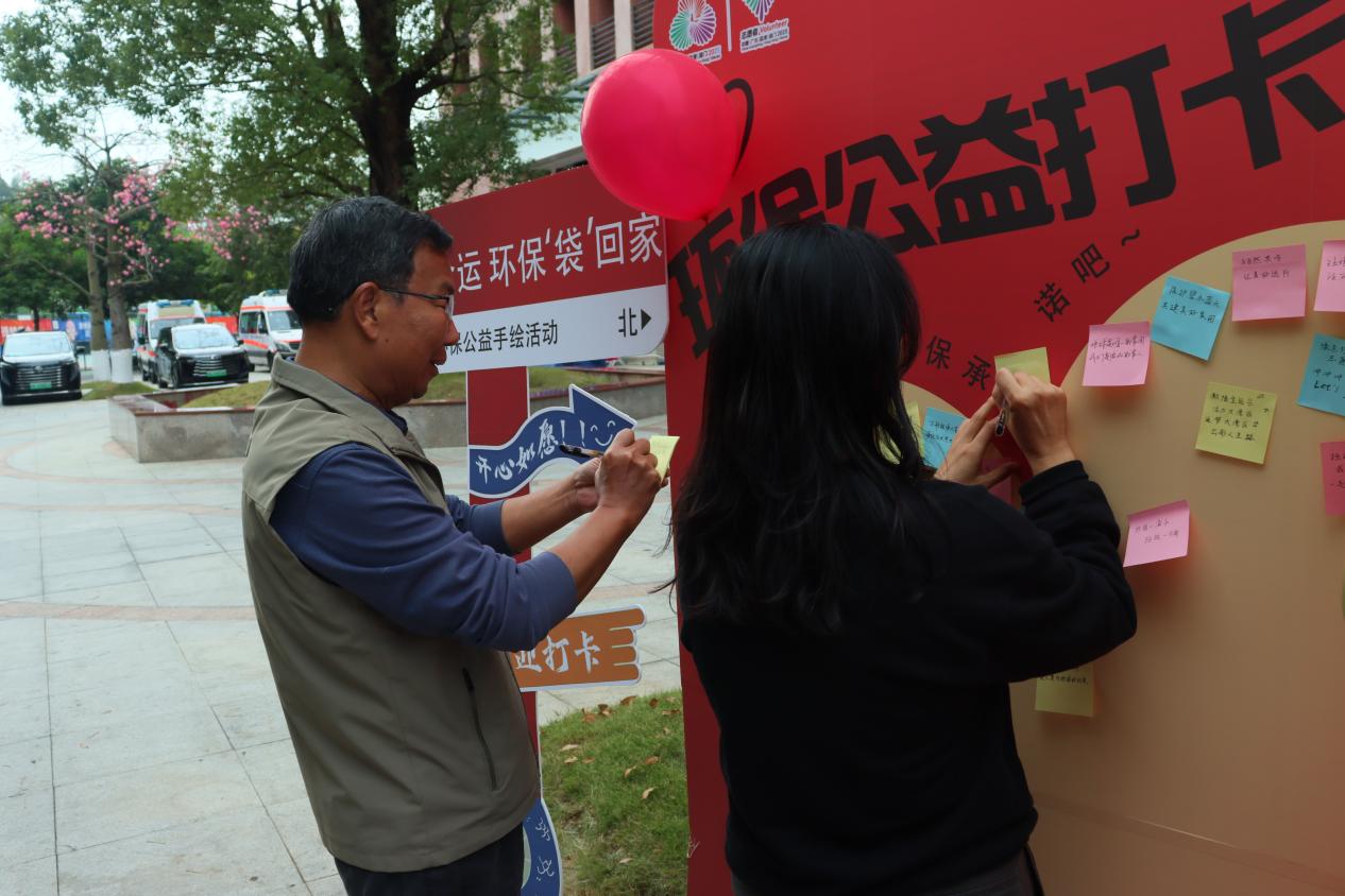 在“环保誓言打卡区”,参与者们在背景墙上留下的不仅是签名与誓言,更是一份份沉甸甸的环保契约。这面逐渐被填满的打卡墙,不仅集中展示了市民日益增强的环保意识,更生动诠释了大家共建绿色城市、助力残特奥会的坚定决心。